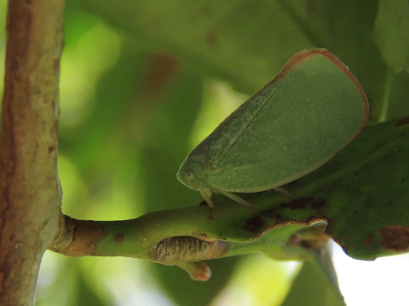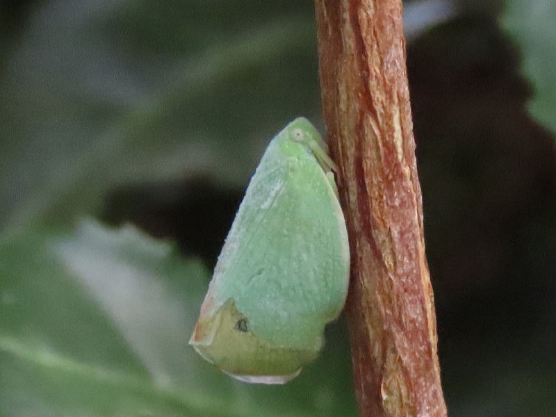 | 最大目的種のヘリチャハゴロモ。 私は昨年撮ったけど、ゆたかさんは生きてるのを見ていないのでいてくれてよかった。 ただ、上の方にいたので、ゆたかさんが枝を手繰り寄せると飛んでっちゃった… まだ入り口付近で見れたので、あと数個体は見れるかな?  |