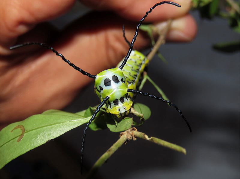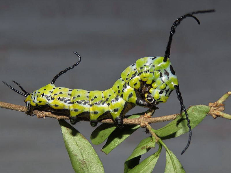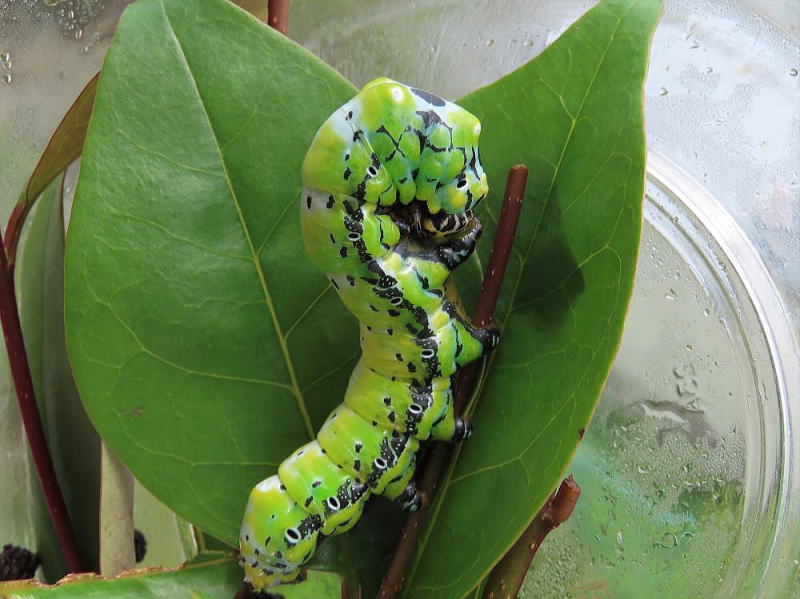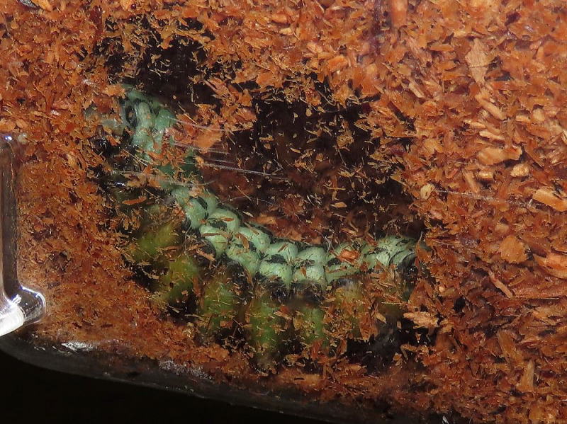20.5.19 家に来てから、1個体が何をしても全く食ってくれない。 いろいろと試してるんだけど… 昨晩、キンモクセイを入れてみると、夜中になってようやく食ってくれた。 この子は丸一日ぶりのお食事だ。 8年前にキンモクセイで吐いてたくさん落ちたのは、殺虫剤だったり虫避けの液体を 使っていた可能性が高い。 我が家の下の木ではその心配がないので、この子はしばらくキンモクセイでいこうか。 |