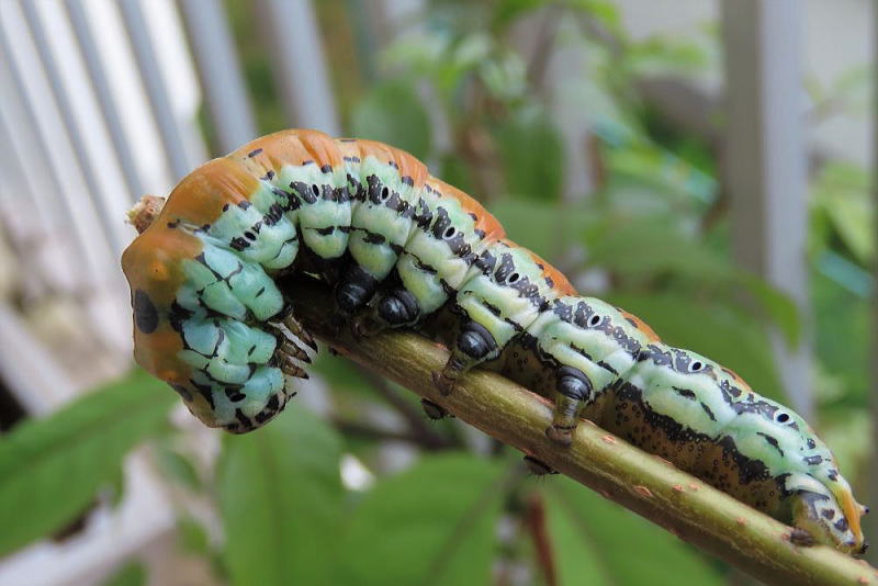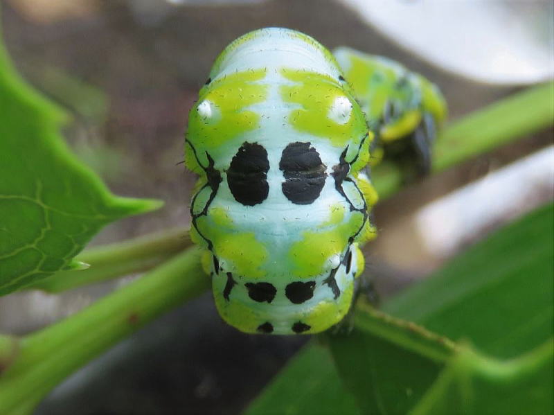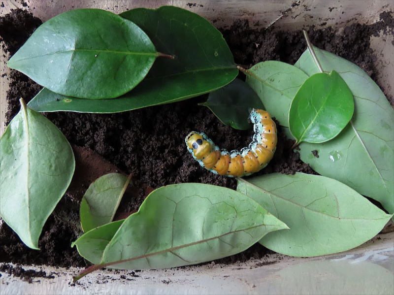 20.5.21 3個体とも見るたんびにいつも食っている。 ほぼ丸一日食いまくってるんじゃない?って思うくらい。 この子らはイボタで捕獲されたけど、小さい葉っぱのイボタじゃすぐ丸裸になるんじゃ? 10個体くらい同じ木にいたらしいし。 幸い、ヒイラギは状態の良い葉がたんまりあるので、エサの心配は無用。 キンモクセイは1匹分なら持ちそうだけど、ヒイラギも一緒に入れてみようかな。 いただいたイボタがもう尽きそうだ。 家に来て4日、そろそろ終齢になる頃と思われる。 |