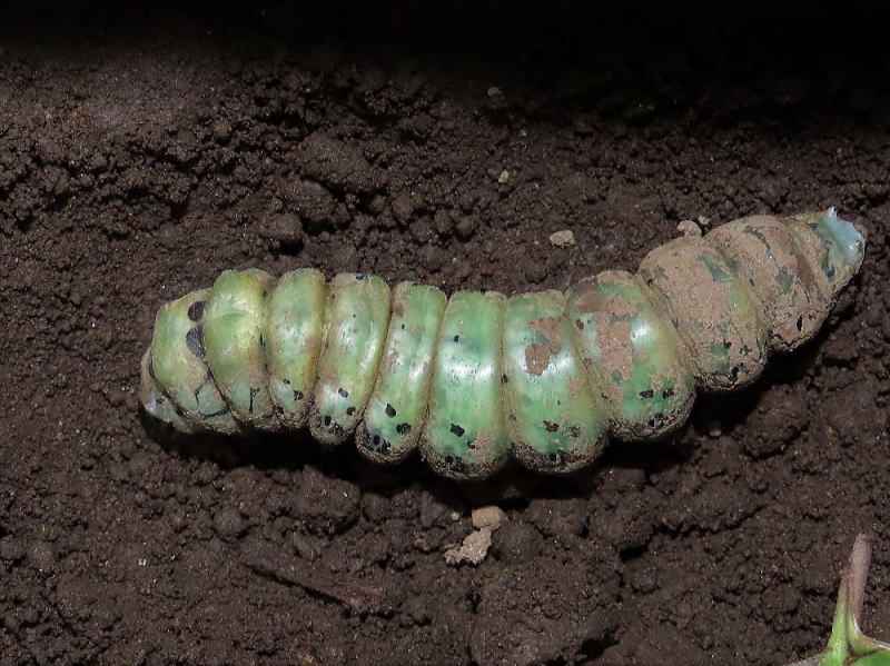 20.6.1 土ケースに入れた1個体目は、ようやく落ち着いたようだ。 もう歩かないで、そこで蛹になってくれ。 |
