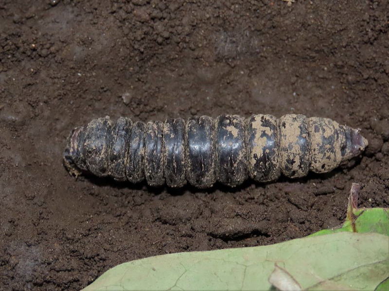 20.6.2 土ケースの個体が蛹になっていた。 潜らずに窪みを作っておいたところでの蛹化。 |