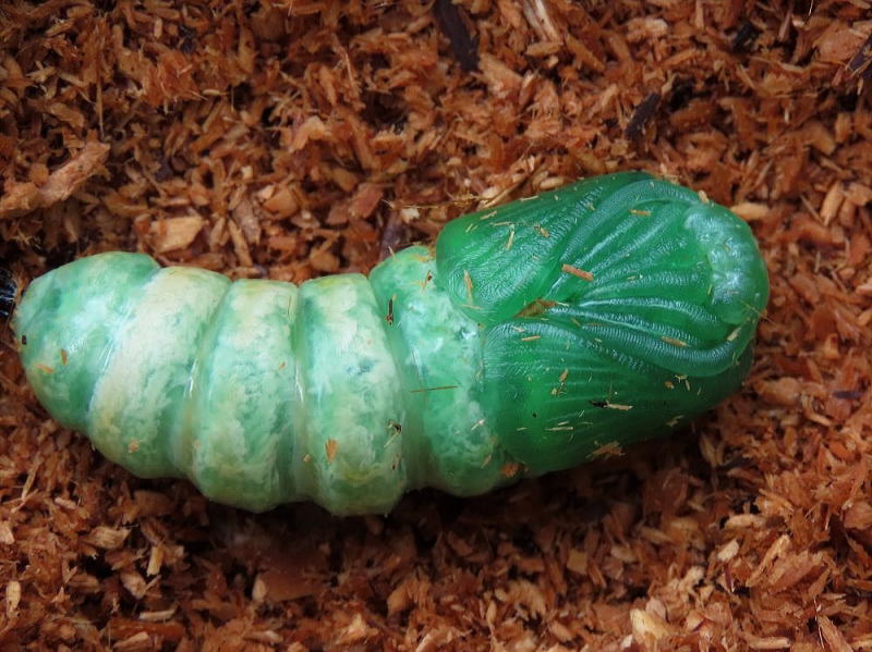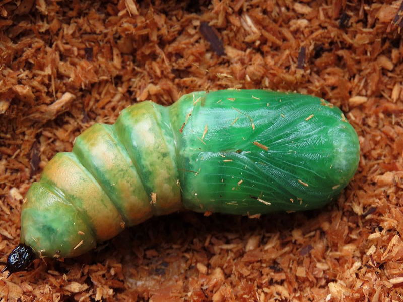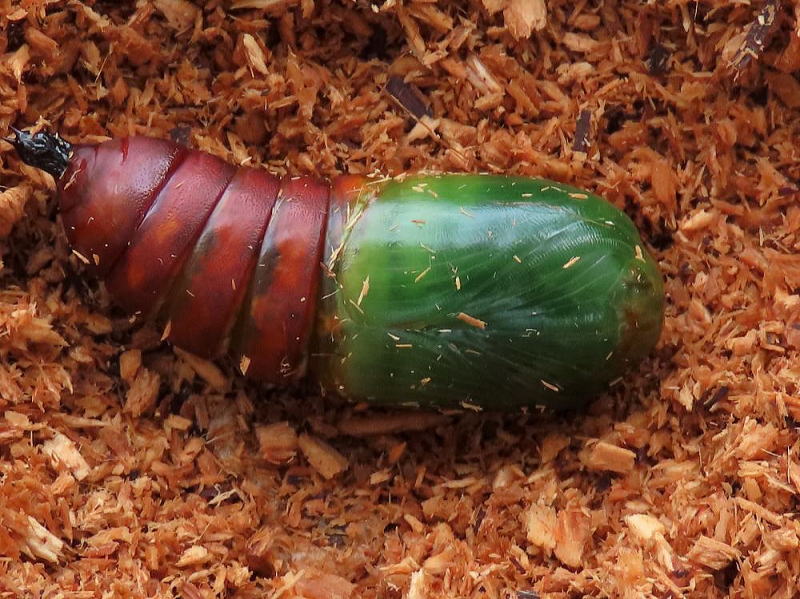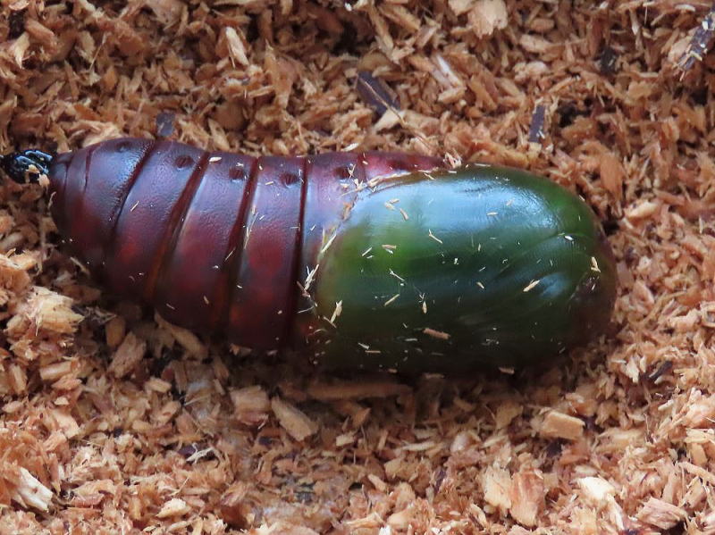 20.6.4 ガビチョ−−−−−−−−−−ん… 先日の土ケースの個体が蛹になったとお伝えしましたが… 幼虫のまま魂が抜けておりました… 蛹ってこんなに長かったっけかな?とは思ったんだけど、なんせ8年ぶりなもんで。 オガコケースの個体が、本日蛹になりました。 潜って蛹になったけど、掘り起こして時間を追って撮影した。 |