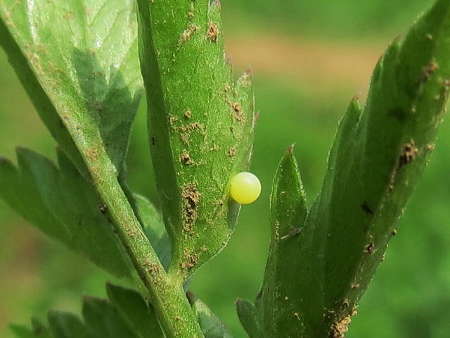 12.5.8 本日の散策中にキアゲハが産卵していたので、卵を一つだけ我が家へご招待した。 一度卵からやってみたかったので。 たぶんセリの葉だと思うけど、自宅付近には食草がないので、いくつか根っこから抜いてセリを持ち帰る。 足りるかな… |
