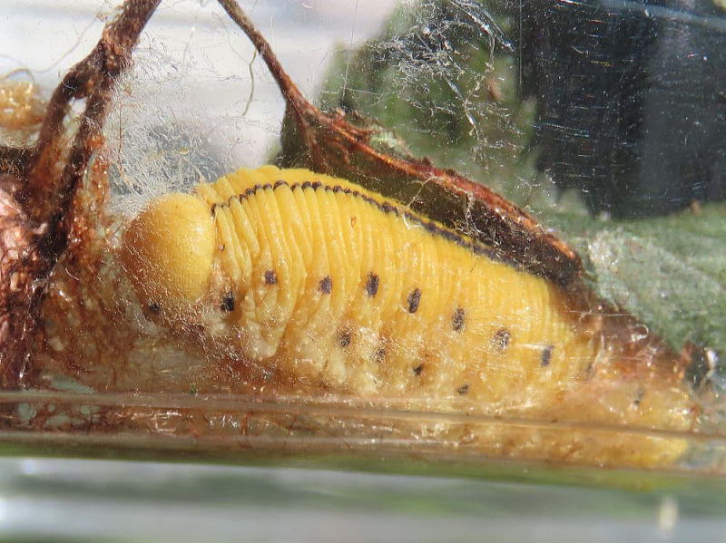 20.8.31 なんか、↑の状態で嫌な感じで変色をしている。 ハバチの蛹は初めてなので、蛹化前にそうなるのかわからない。 ちょっとダメになっちゃったっぽい気がするけど、もう少し様子を見たい。 |
