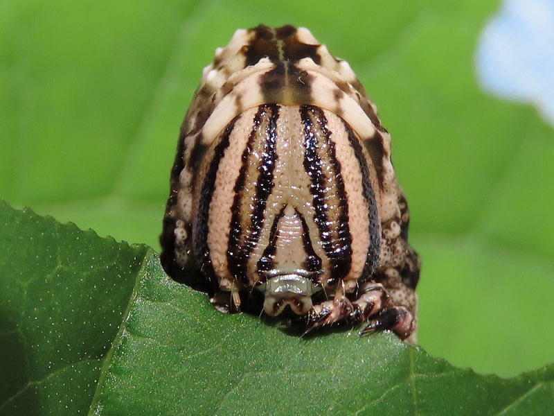25.9.25 昨日撮影しようと思ったが、脱皮態勢に入っていたのでそっとしておいた。 本日、無事に終齢になっていた。 やっぱりこの色になっちゃったのね… |