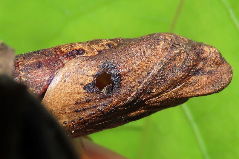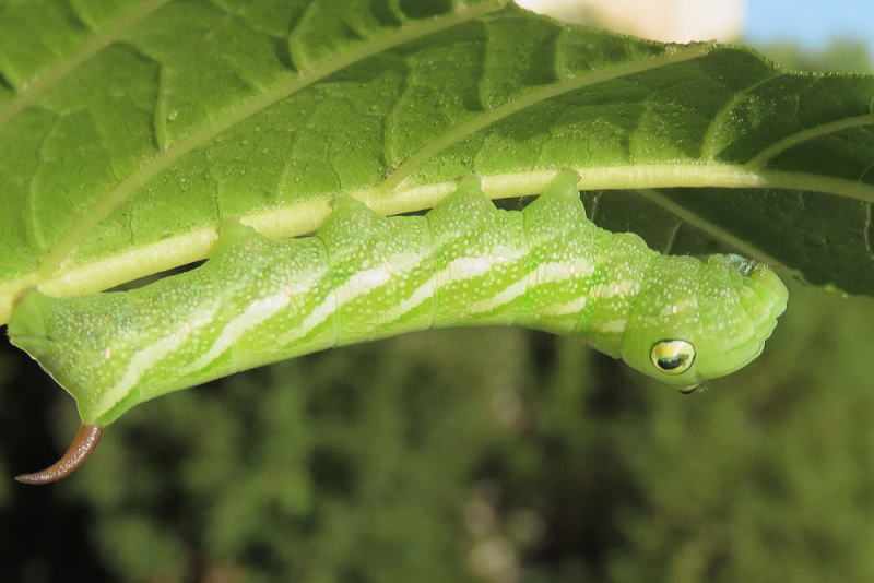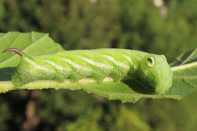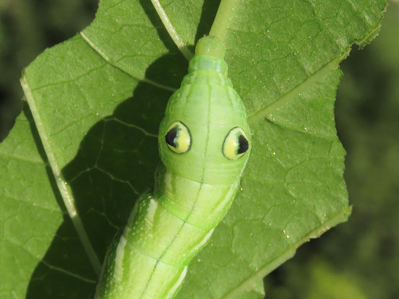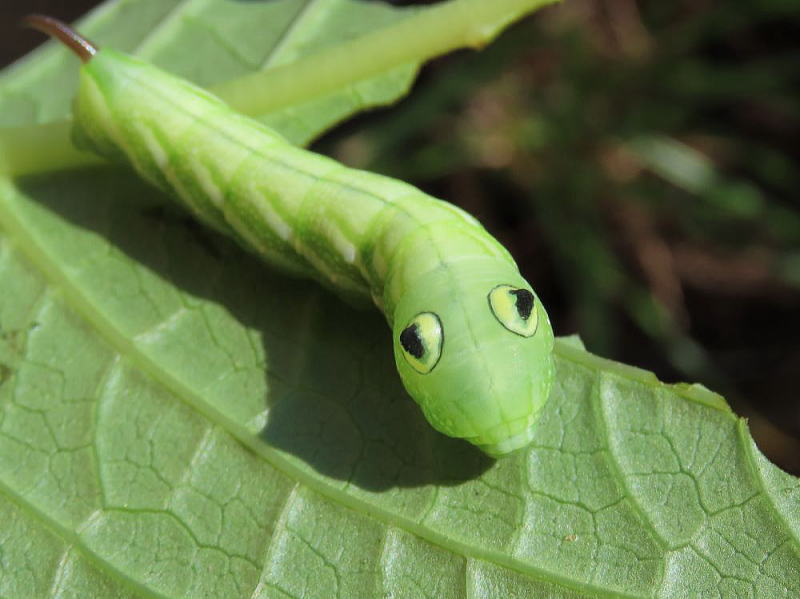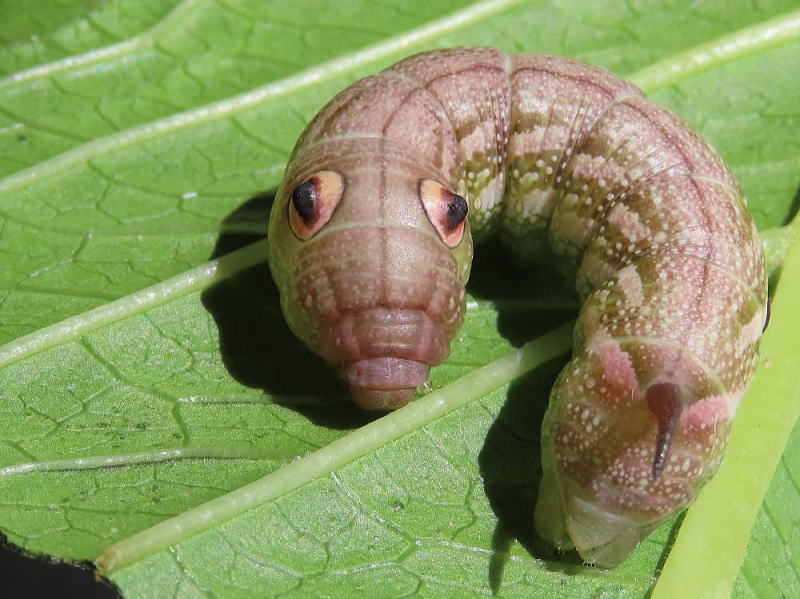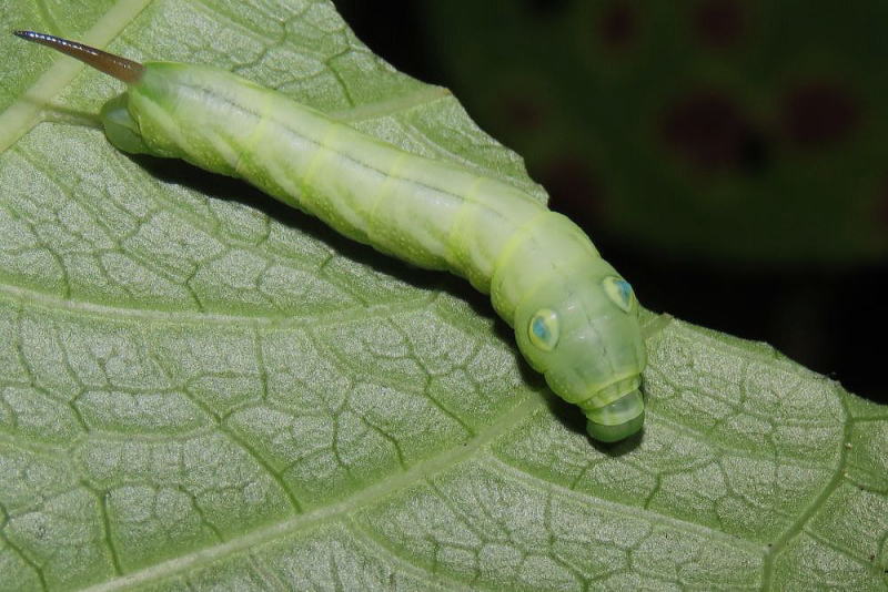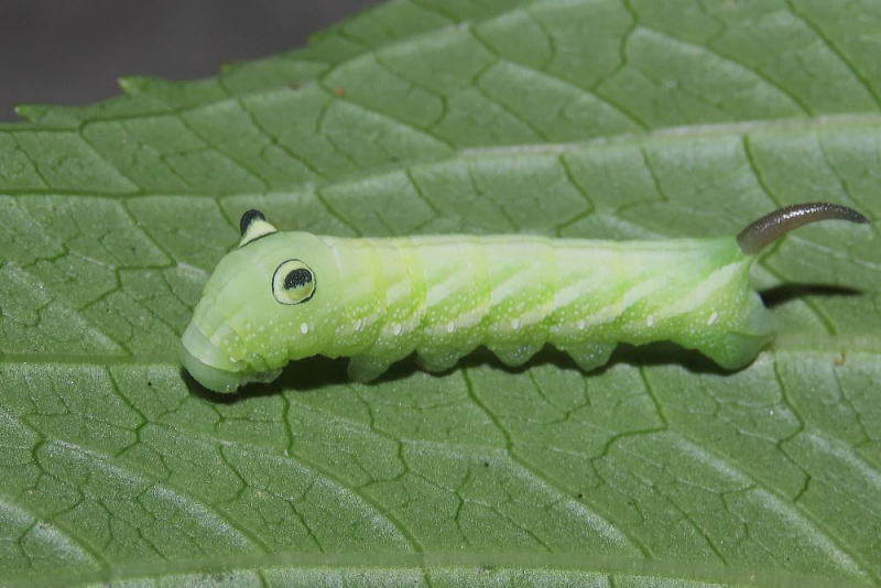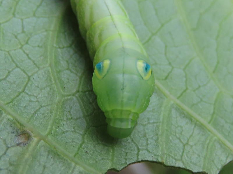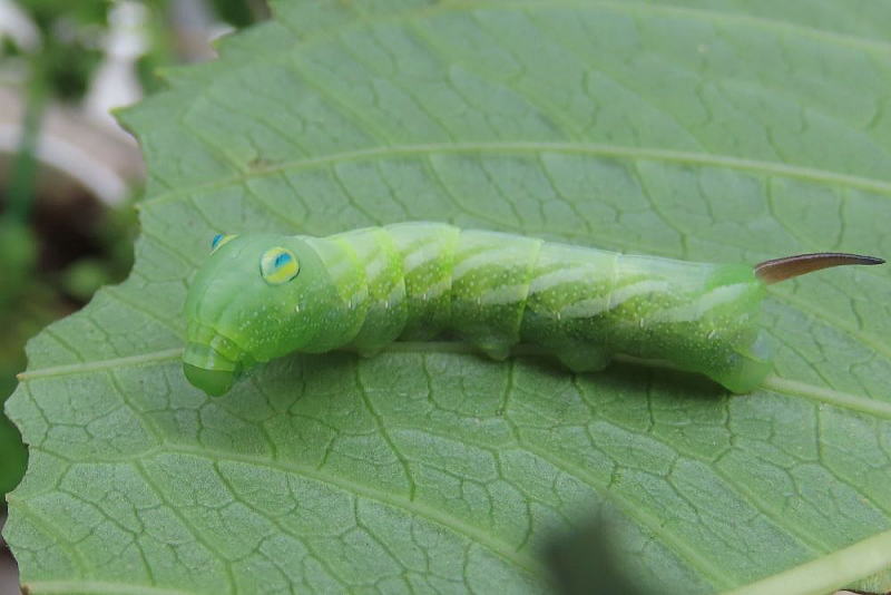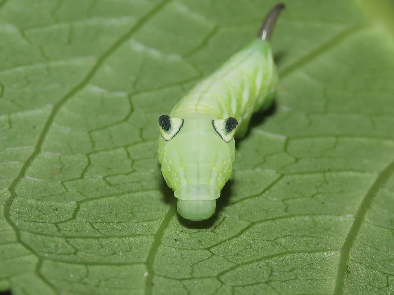24.9.16 昨晩、ライトトラップへ参加していた際、合間にアジサイの葉を見ていたところ 4齢と思われる幼虫をmonroeさんに見つけていただいた。 感謝です。 スズメガの中では、観察レポでやってみたい最上位種。 なんてったってこのビジュ! たまらん! 現地で撮影。 |