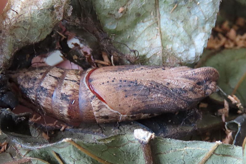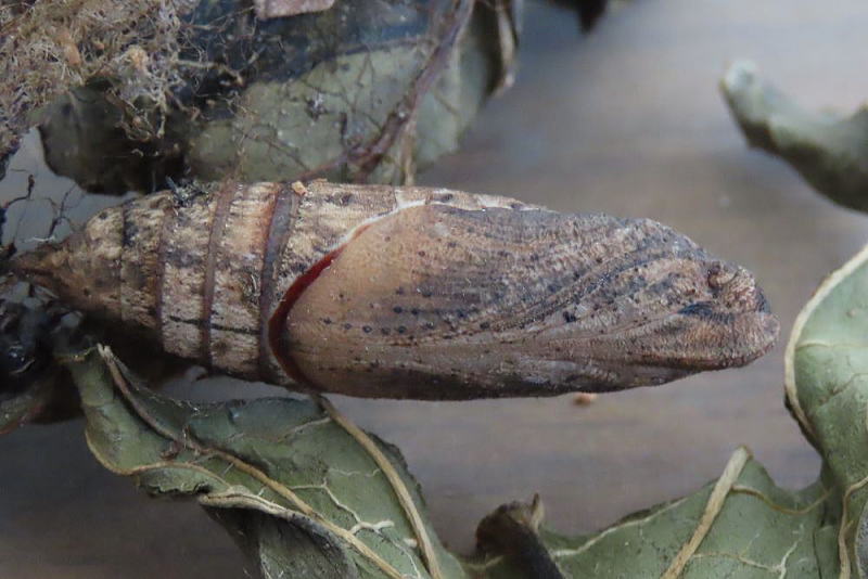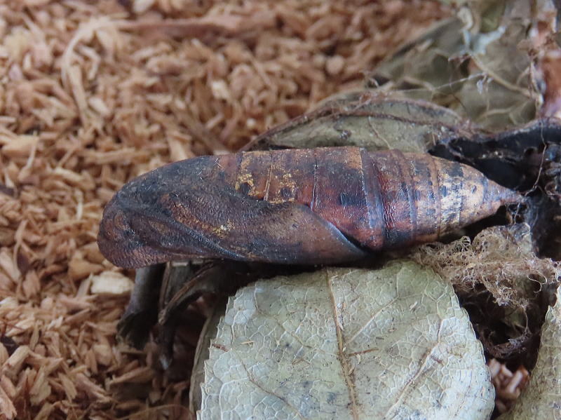 24.11.5 見た目は変化がなく、羽化は来春かな? 寄生疑惑が心配だったけど、本日撮影の際に触ったら動いたので安心できた。 |