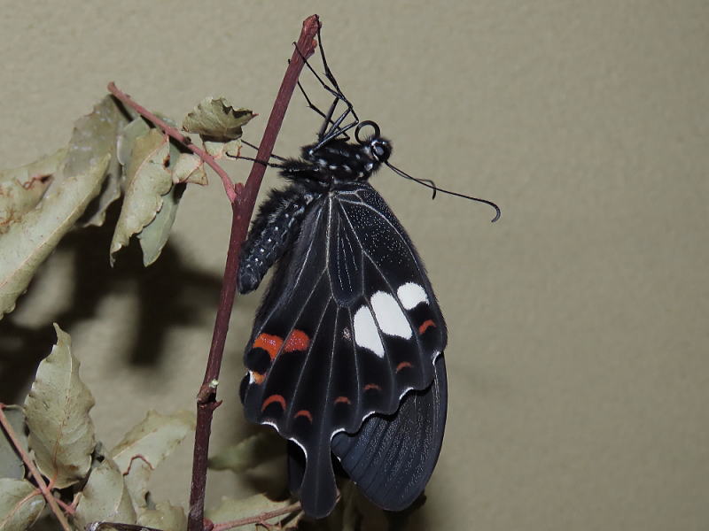 | しばらくいたけど、40分ほどしたら飛んでいった。 羽化の瞬間は見られなかったけど、越冬して無事に羽化してくれてよかった。 Papilioさん、機会をいただきありがとうございました。 |