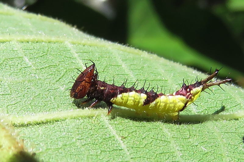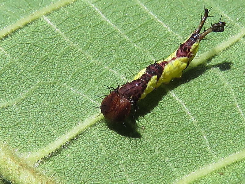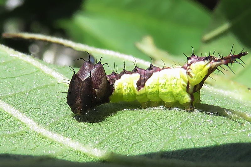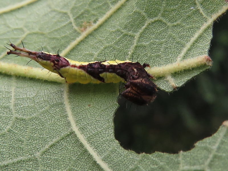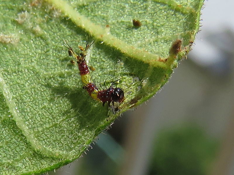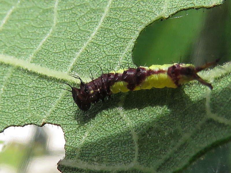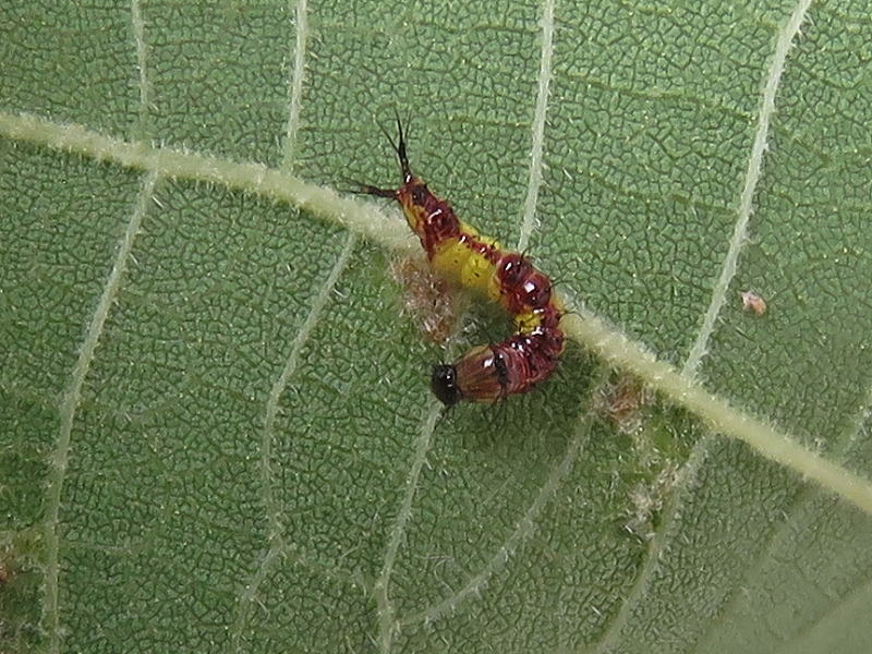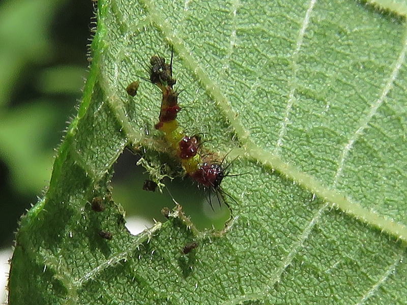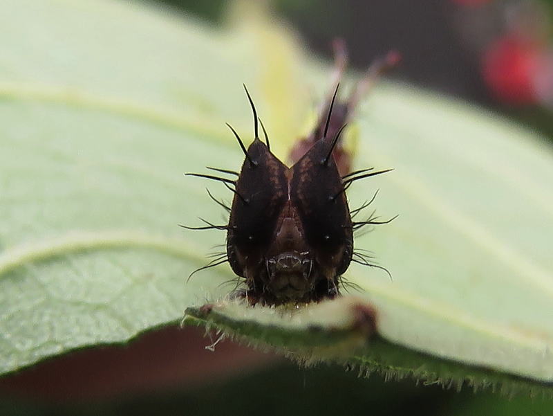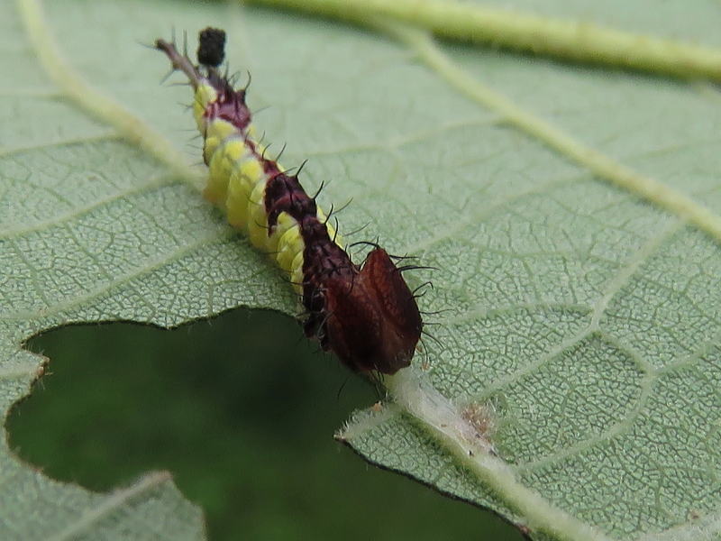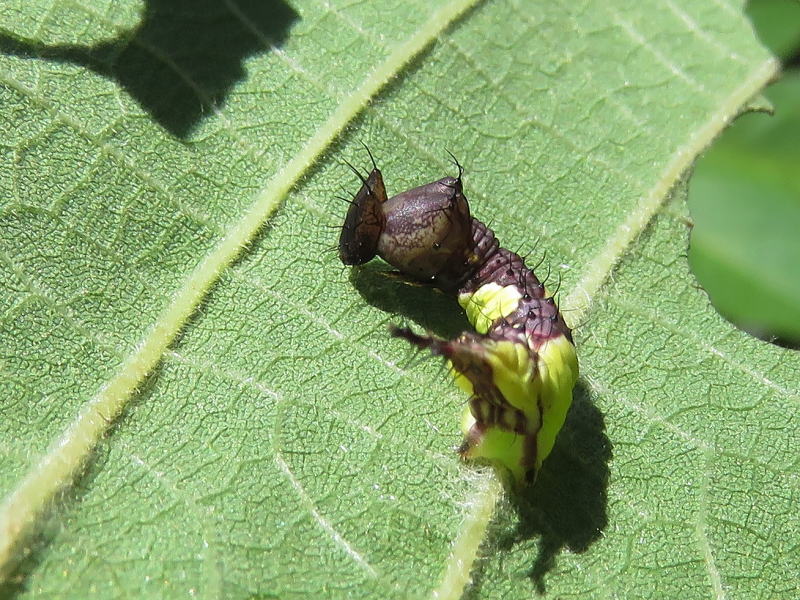 17.8.28 結局2個体だけだった。 孵化率が良くないのは自然界でも一緒なのかな? でも、この2個体はとても順調に葉を食っている。 |