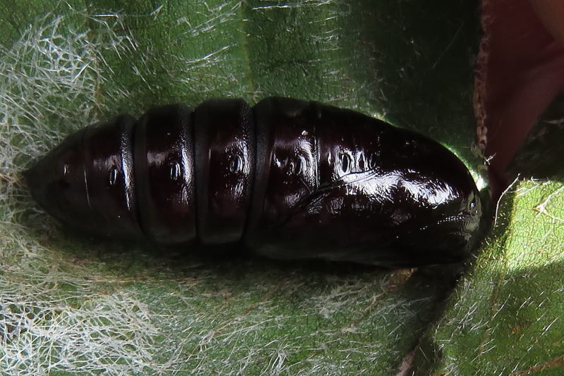 撮影時にクネクネと動いていた。 過去の観察では10日前後で羽化しているので、23日頃かなと思っている。 |