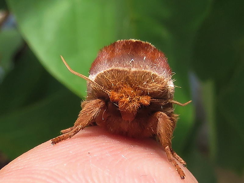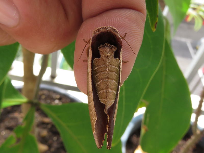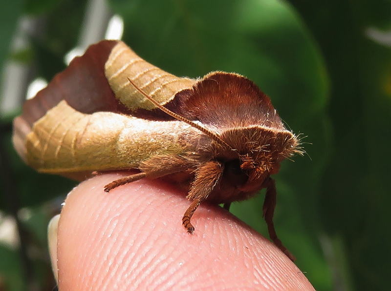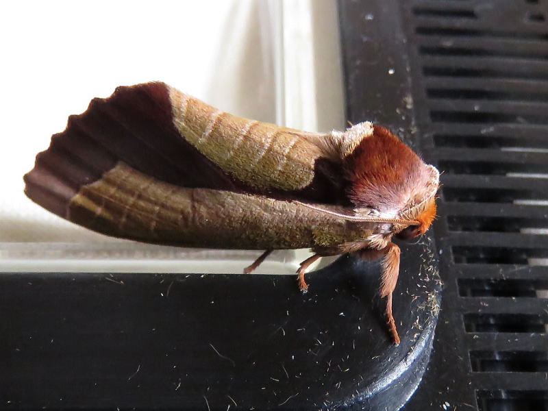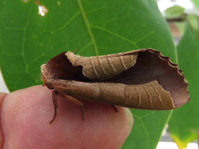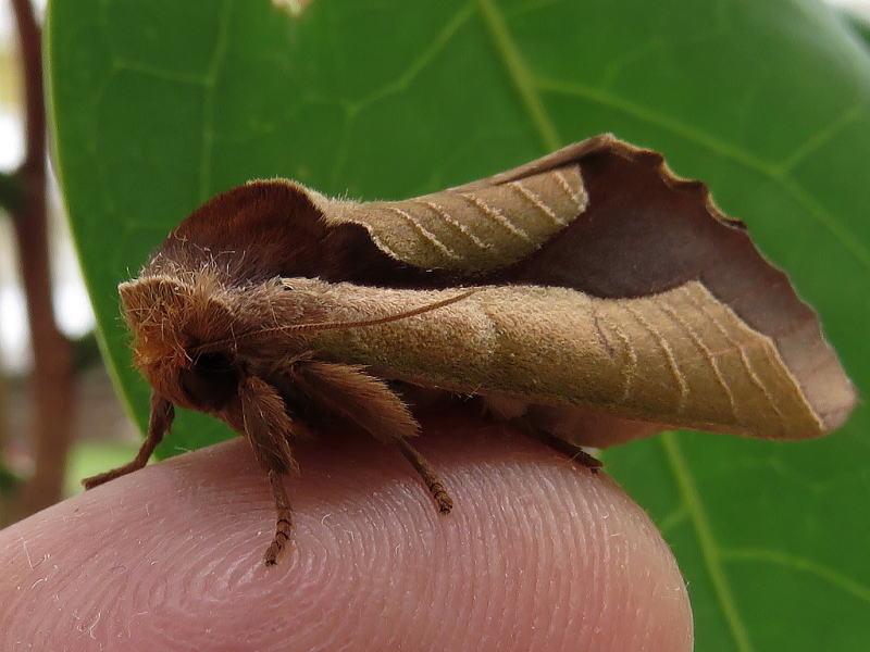 17.8.21 散策中に、今年初のムラサキシャチホコを発見した。 大きさから♀っぽく、もう1個体小さめのがいて、比較すると一目瞭然。 とりあえず、交尾するかもしれないので、2個体を確保した。 数十分経過しても変化はなかったが、その後ようやく♀が産卵を始めたようで、 全部で7つ確認できた。 画像は、釈放前の♀と産みたてホヤホヤの卵。 今年も観察が出来そうだ。 |