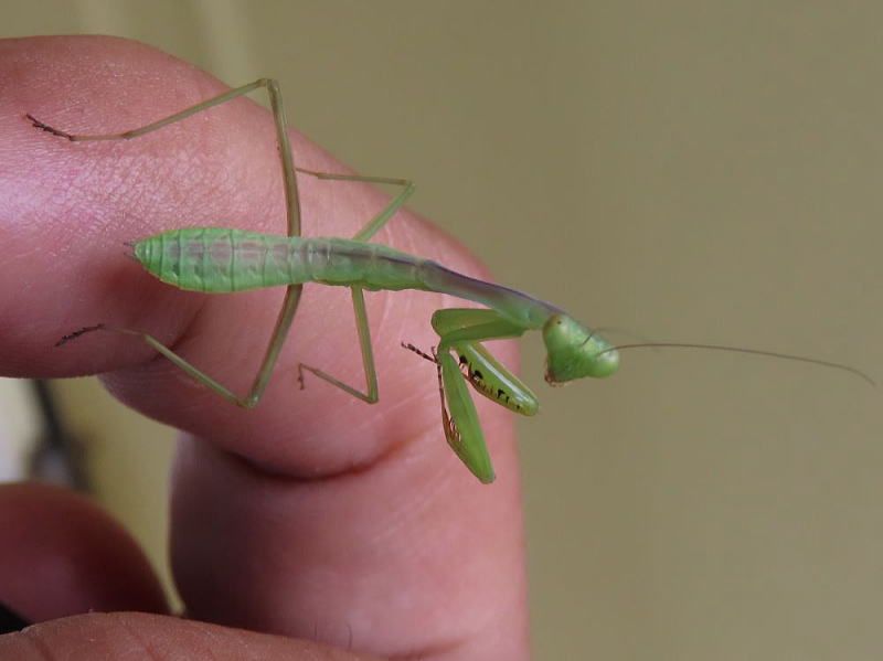 23.6.6 6個体のうち、1個体が今日落ちていた。 おそらく原因は脱水か? エサは三日に二度与えていて、たまに一日二回にしていた。 エサ切れや事故はなかったので、それしか考えられない。 急遽、5個体に霧吹きで水を与えた。 過去も水を手から飲んでいたことを考えると、今後は気を付けなければいけない。 残りの30数個体、正確には20個体ちょっとだった。 ということは、孵化したのは30ほど。 で、これらはどうしたかというと、いろいろ考えリリースをためらったのでそのまま放置していた。 当然のことながら、エサも水も与えなかったわけだから… そんななか、2個体だけまだ生存していた。 孵化して15日、飲まず食わずで生きていることに感服。 敬意を表して、この2個体は面倒を見ることにした。 まずは水を与えると、すぐに吸い始めた。 少し元気になってエサ与えたら、1個体はすぐに完食した。 もう1個体は微妙かも… これからは遅れを取り戻すべく、成長していってほしい。 画像は水を飲んでいるところ。 |