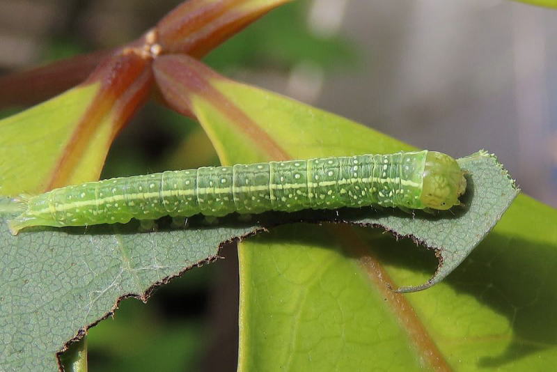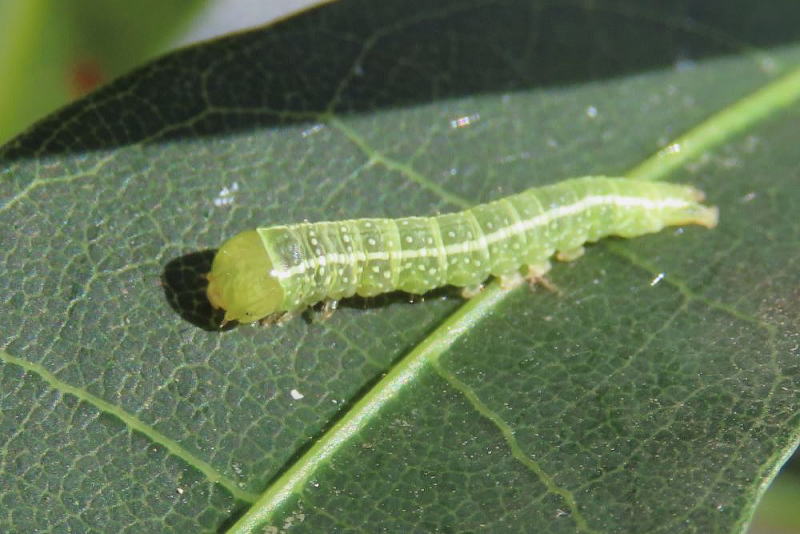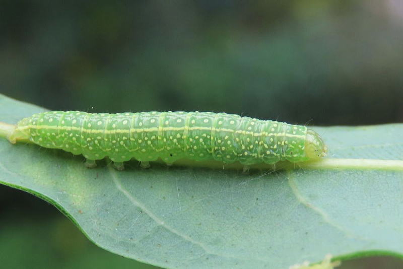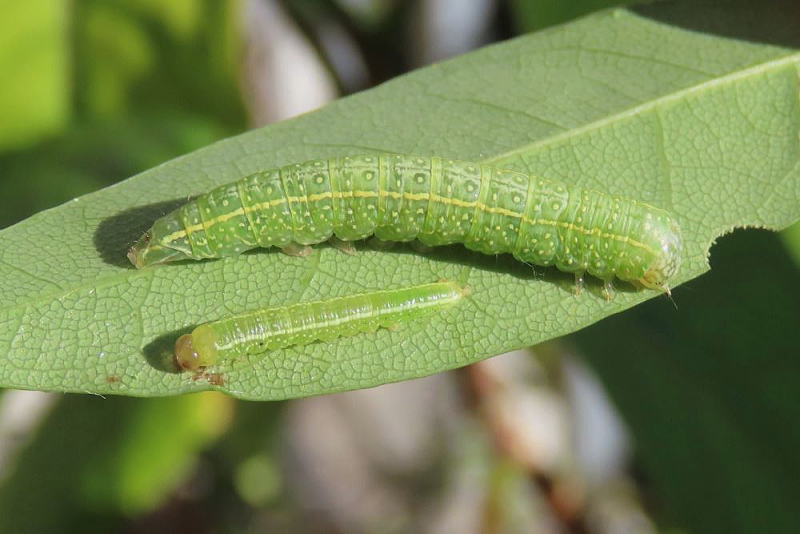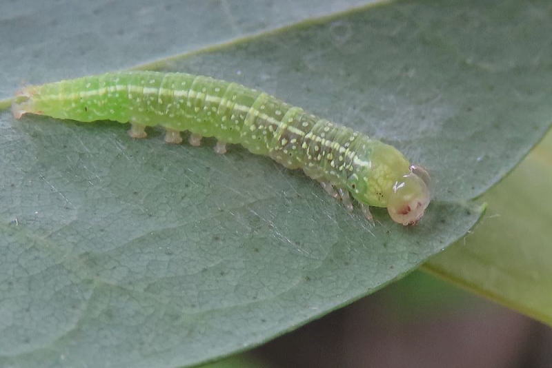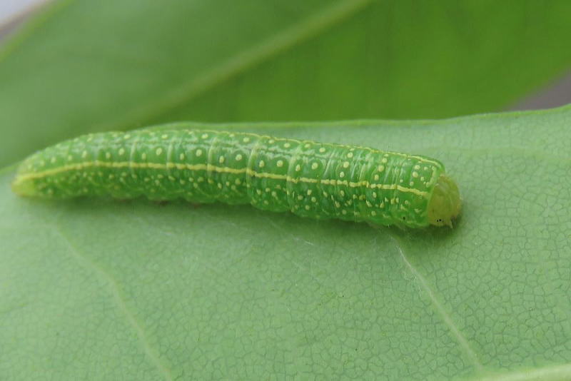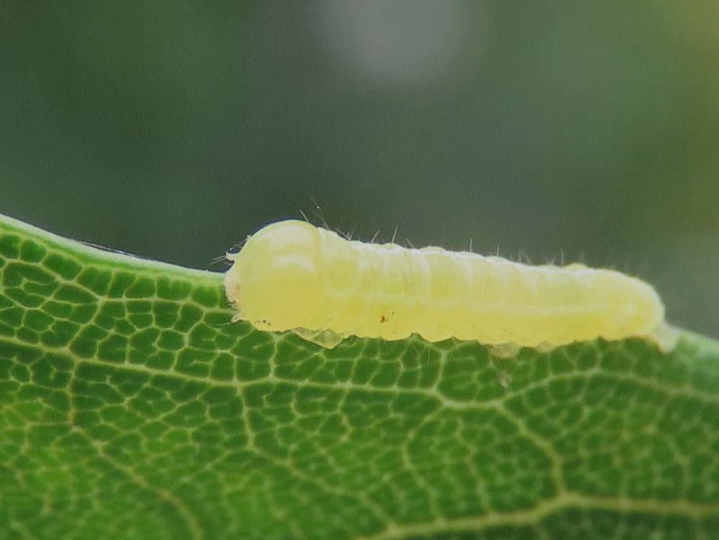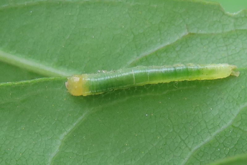 小さい方はガラっと変化した。 成虫が小さいので、すでに3齢なのかもしれない。 まだ本種の幼虫なのかは確実ではないけど。 |