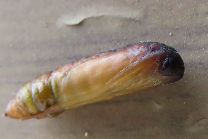 もう1個体は外で管理しているので、無事ならば春に羽化してくれるだろう。 |