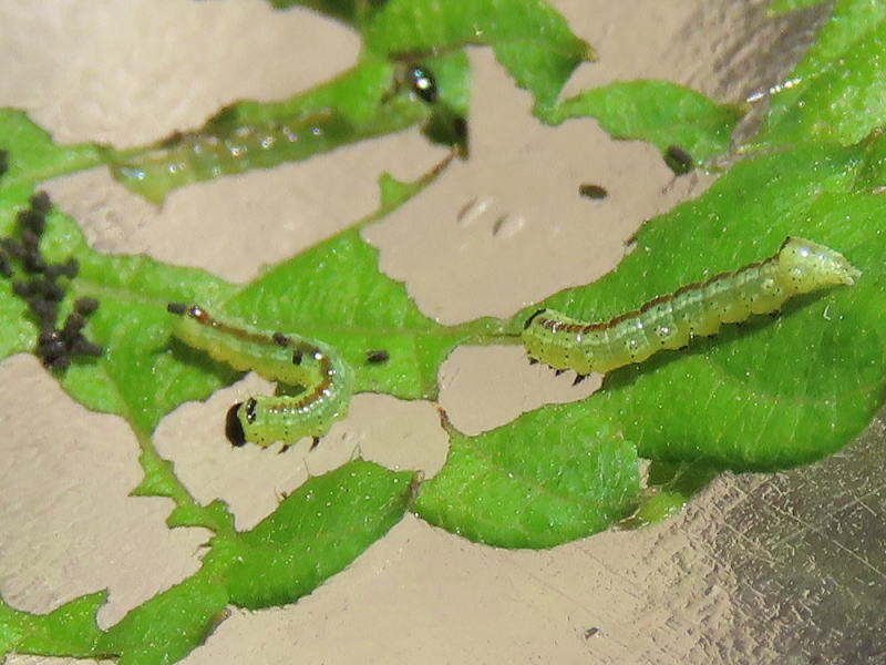 | 26.4.19 葉っぱ交換して数を数えようとしたけど… 意外と多くめげた。 30ちょい? 40オーバーかも… ほとんどが2齢になっているようだ。 |