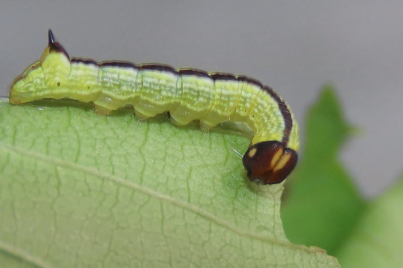 | 26.4.26 1個体が脱皮していた。 これで4齢と思われる。 ちょっと大きくなり、お尻の突起が目立つようになった。 |